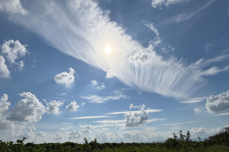 飛行機雲からなびいた毛状雲だと考えられます。