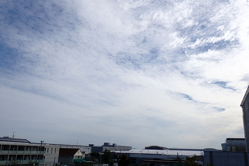 高度の高い高積雲。 2025年10月2日、8時57分、羽島キャンパスで撮影しました。