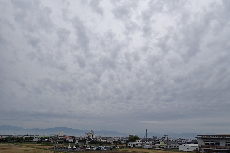 一様な高層雲の下に雲が流れてきて、部分的にアスペリタス波状雲のようになりましたが、