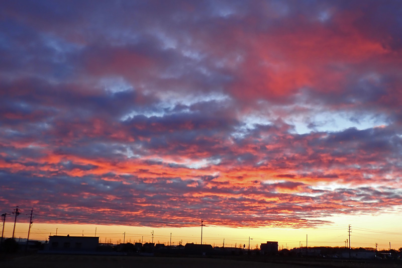 日の出前に朝焼けで、東の雲がきれいでした。