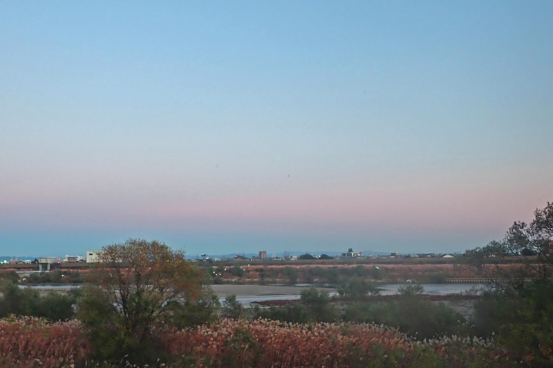 日没後、大地と空の境界部付近の空が地球の影に入り、青くなりました。