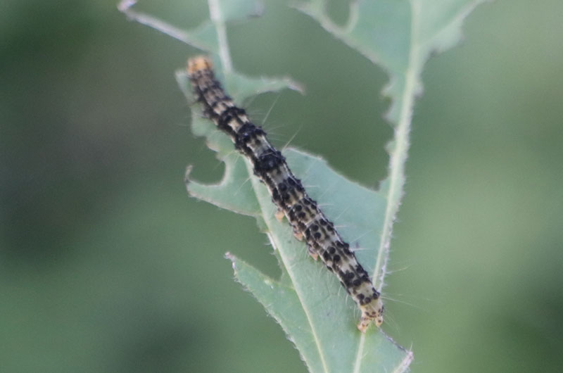 フクラスズメの幼虫に混ざってカラムシの葉を食べていた幼虫。