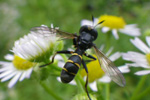 見かけはハチのようですが、触覚はアブのなかまのもの。
