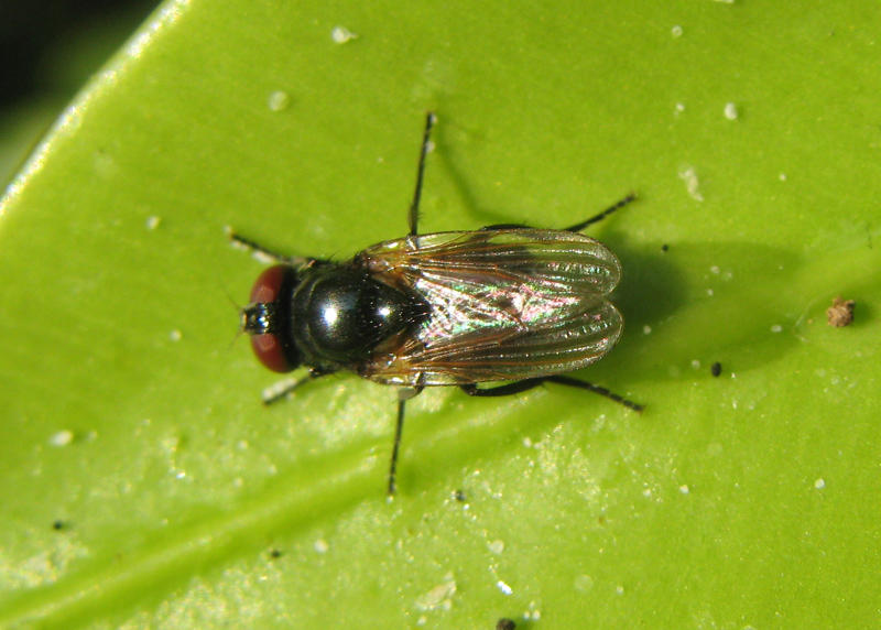 翅脈の形態からは、ハナバエ科かフンバエ科ですが、ハナバエ科に掲載しています。