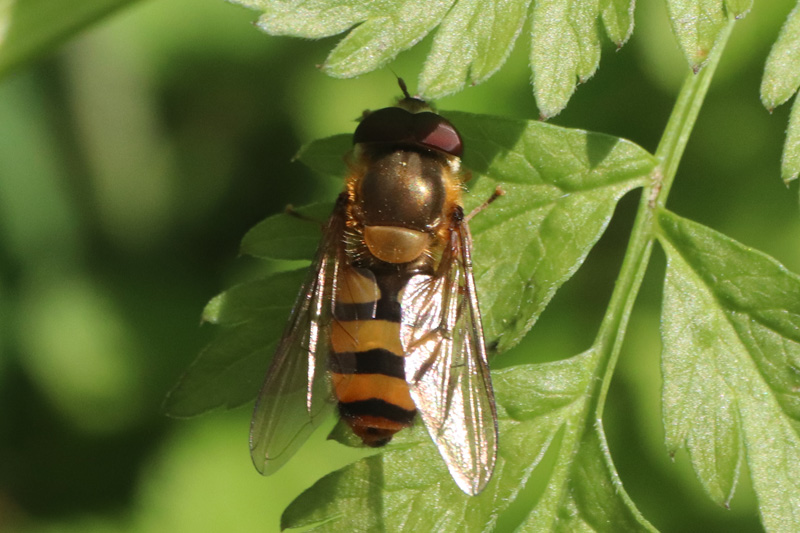 ヒラタアブ属。額が暗色なのでマガイヒラタアブとしました。