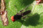 複眼が大きく、赤い色をしたハエ。