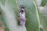 翅脈の形態からミズアブの一種であることがわかります。腹部が青みがかっているので、