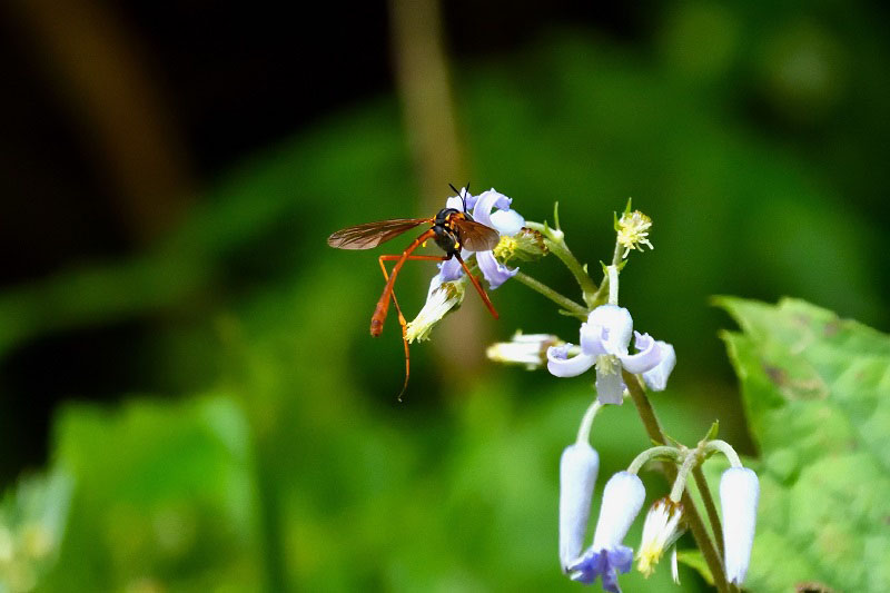 クサボタンで吸蜜するスズキハラボソツリアブ。