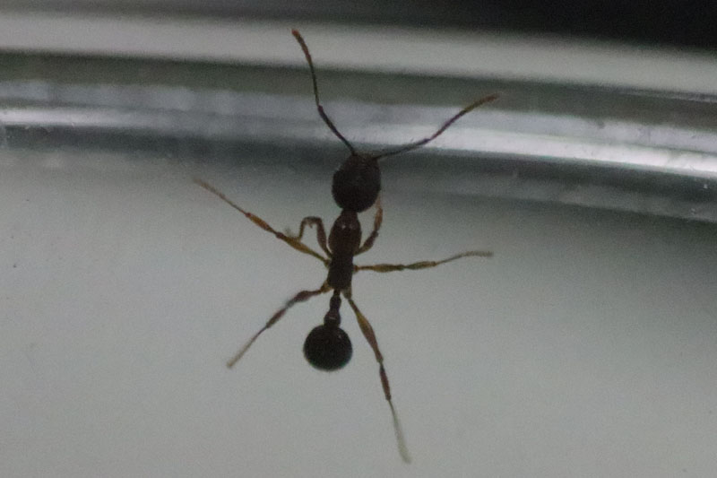 シルエットから、アシナガアリかヤマトアシナガアリが候補。
