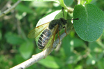 腹部の縞模様が特徴的なコンボウハバチ。アキグミにきていた。
