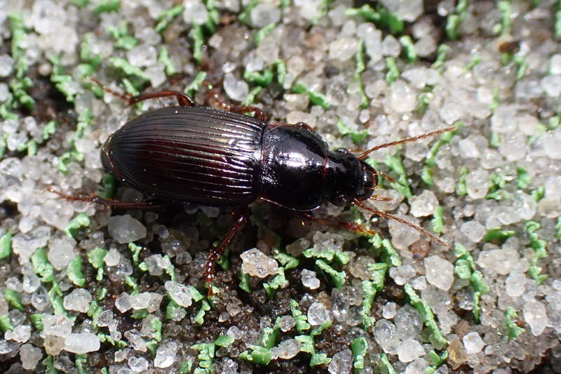 触覚や脚は赤褐色。後角は直角に近いので、アカアシマルガタゴモクムシとしました。