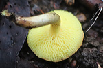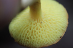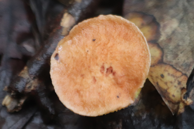 かさの径は2-5cmぐらい。裏側は黄色。管孔の目が粗い。