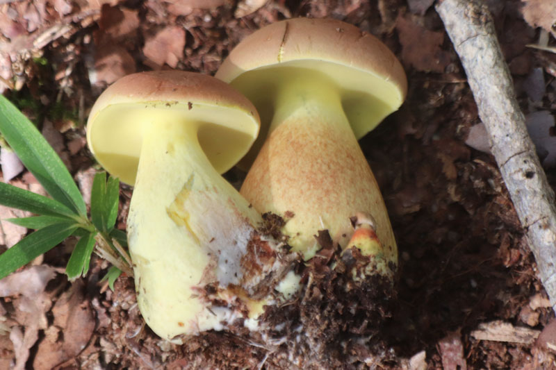 イグチ科、柄の根元がとっくり状に膨らんでいる。