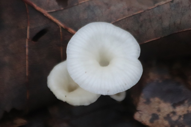 白色で、中央部がラッパ状にくぼむ。
