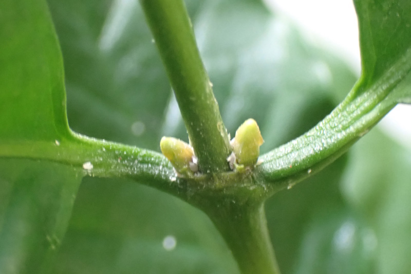 過ぎ、最近、葉の付け根に花芽があるのに気づきました。