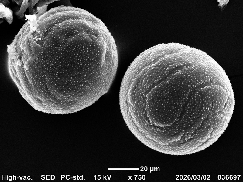 黄色のクロッカスの花粉を観察しました。