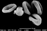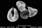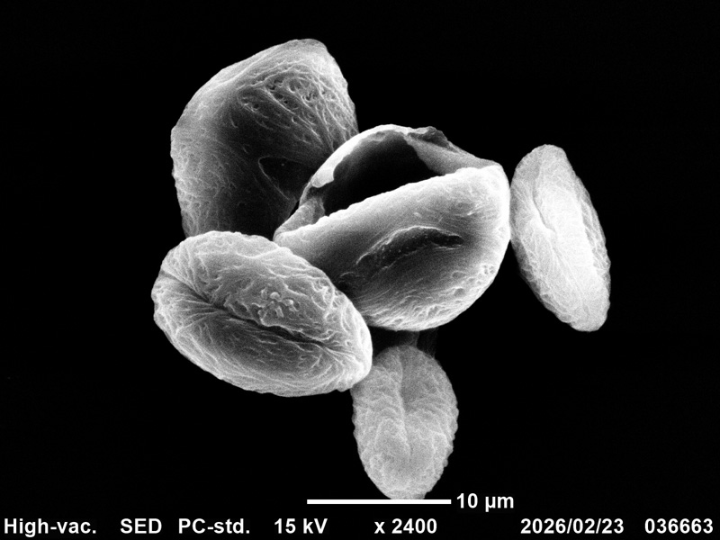 交雑種のためか、花粉の形や大きさは不ぞろいで、正常な形ではないようにみえる。