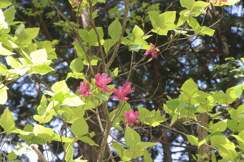 ダイセンミツバツツジの変種。開花期に葉が開いている。