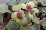 ボタンネコノメソウに似ていますが、ガクが赤褐色なのでアカヒダボタンとしました。