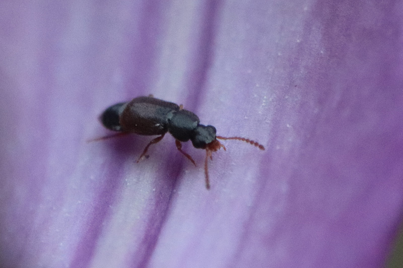 カタクリの花に集まるハナムグリハネカクシ