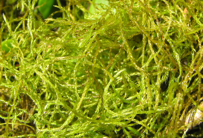 ハイヒモゴケ科。湿度の高い場所に生えた樹木から垂れ下がる。