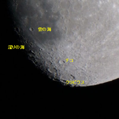 チコの南の大きなクレーターがクラビウス。